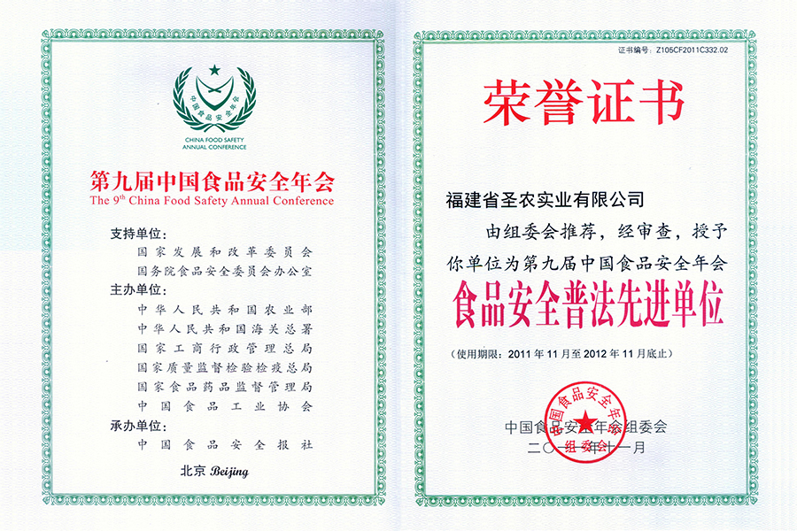 • 2006年福建省优秀龙头食品企业