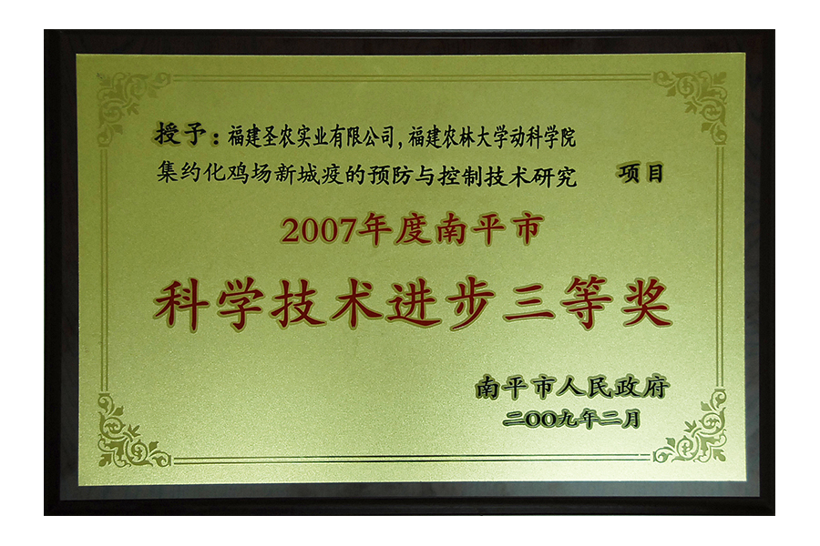 • 2007年度南平市科学技术进步三等奖
