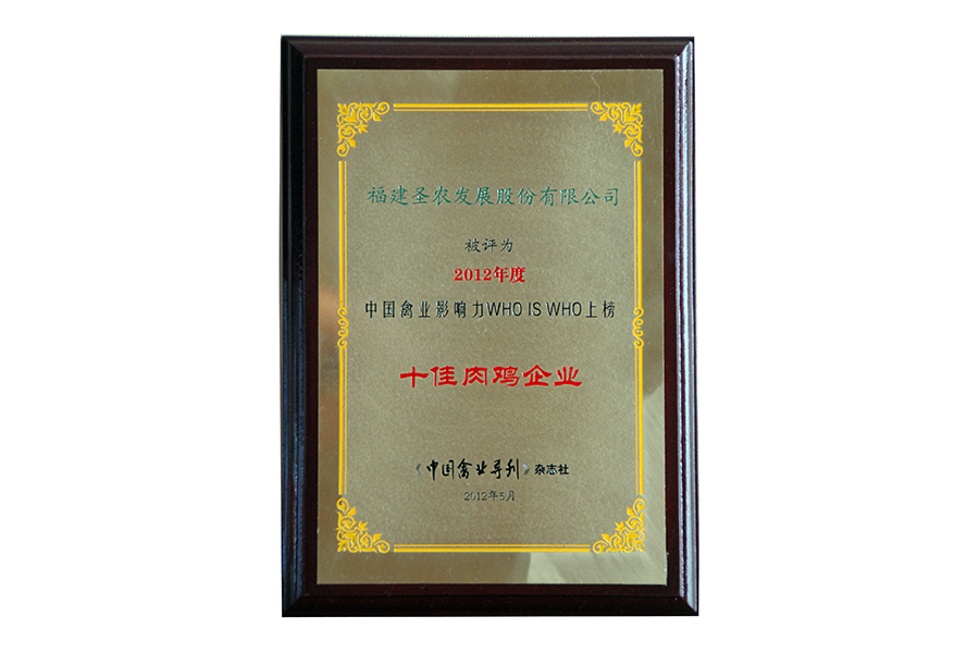 • 2012年度中国禽业影响力十佳肉鸡企业