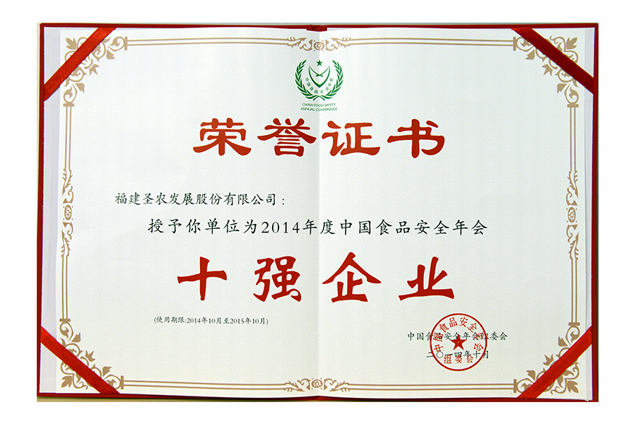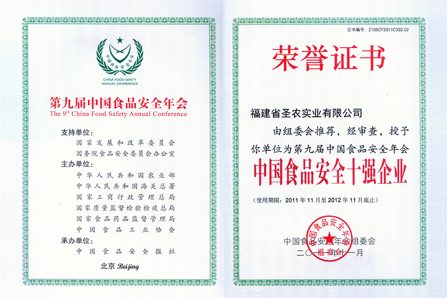 • 2011年中国食品安全十强企业