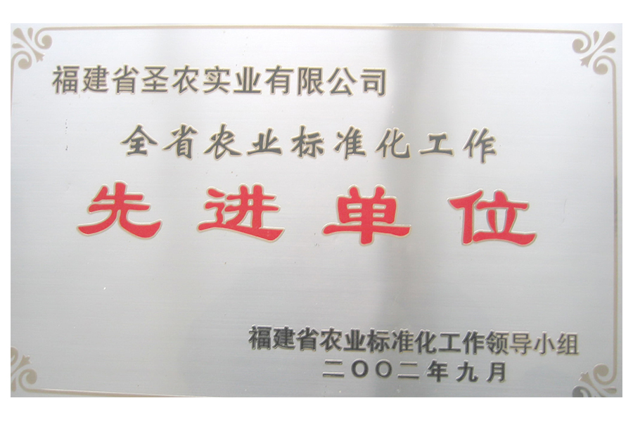 • 2002年全省农业标准化工作先进单位