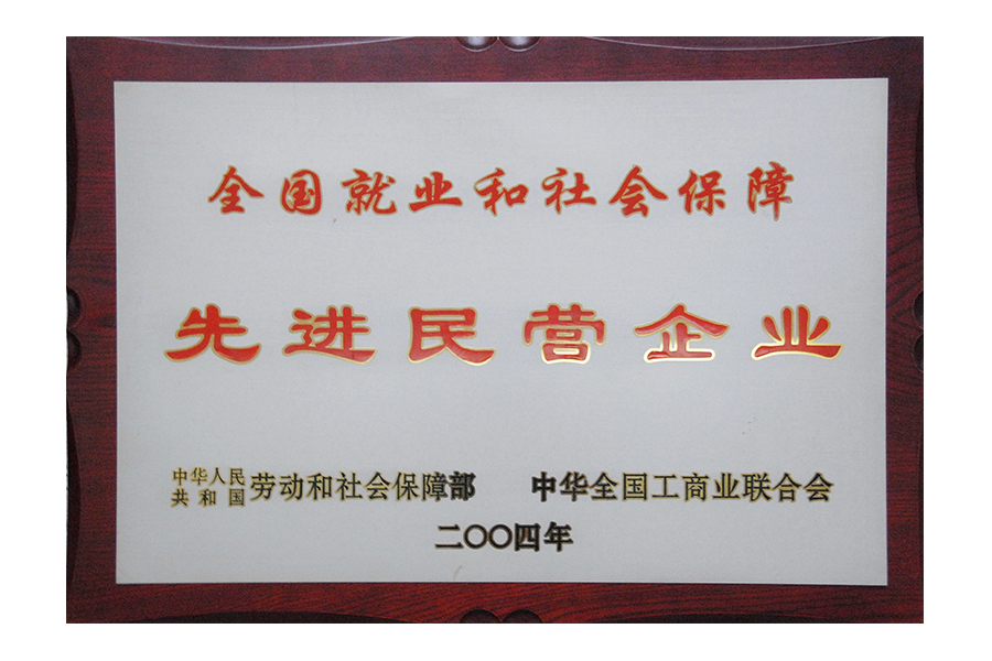 • 2004年全国就业和社会保障先进民营企业