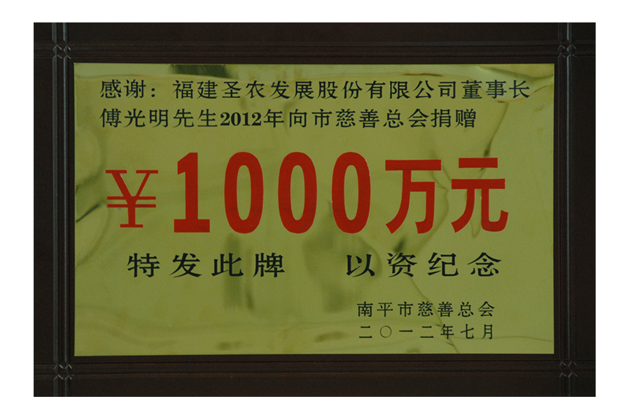 • 2012年向慈善总会捐赠1000万元