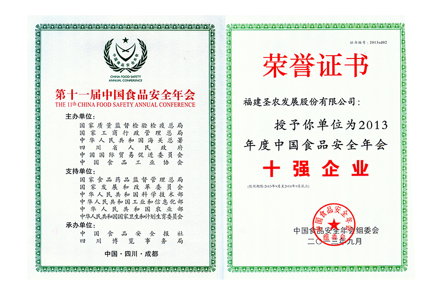 • 2013年度中国食品安全年会十强企业