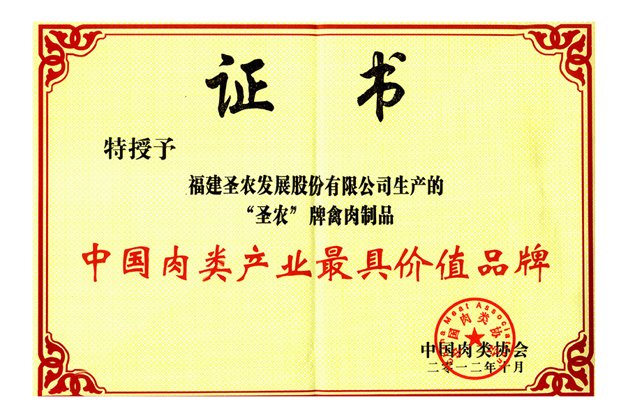 • 2012年中国肉类产业最具价值品牌奖牌