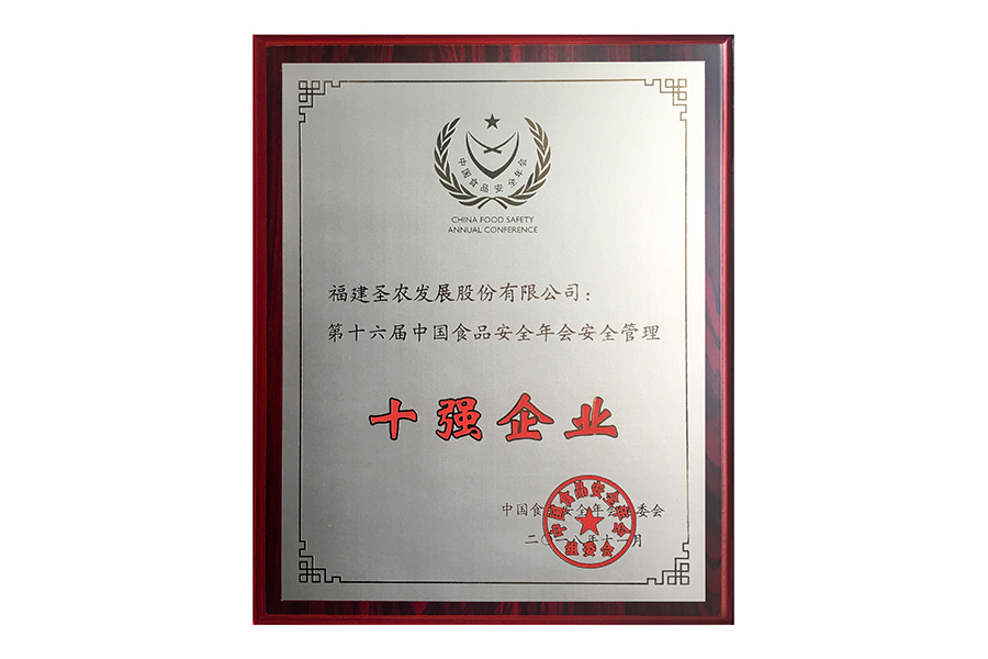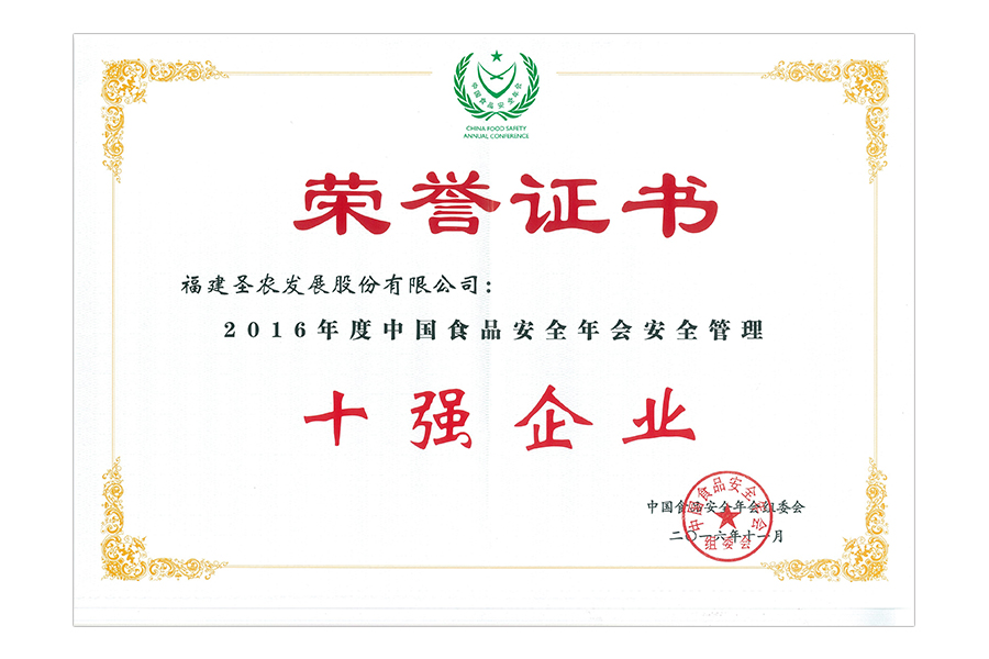 • 2017年中国食品安全年会.安全管理十强企业.证书