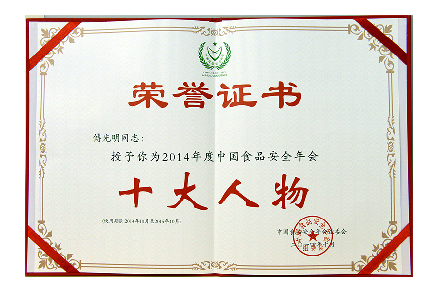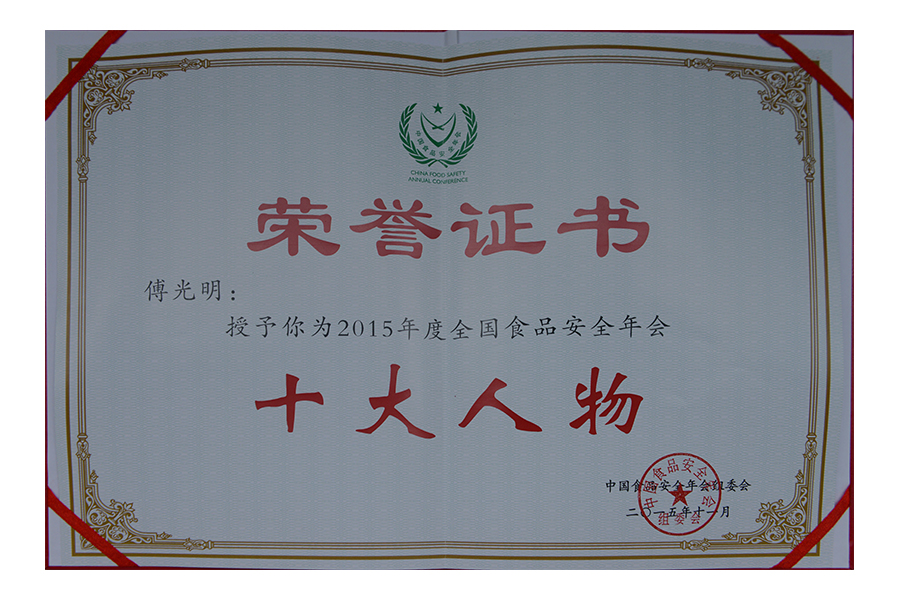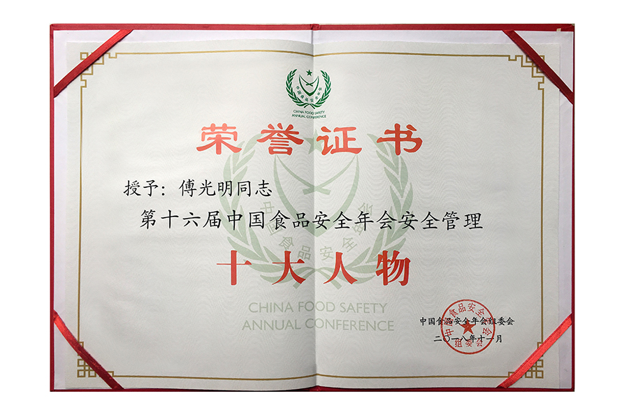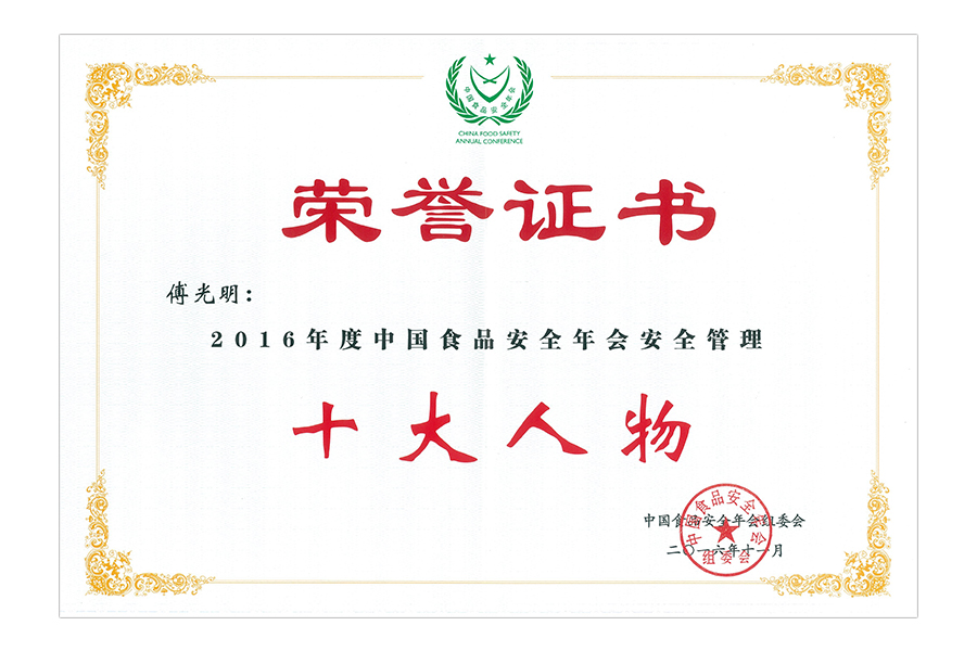 • 2017年(傅光明)中国食品安全年会 安全管理十大人物.证书
