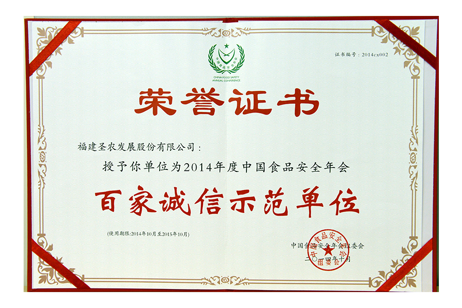 • 2014年百家诚信示范单位