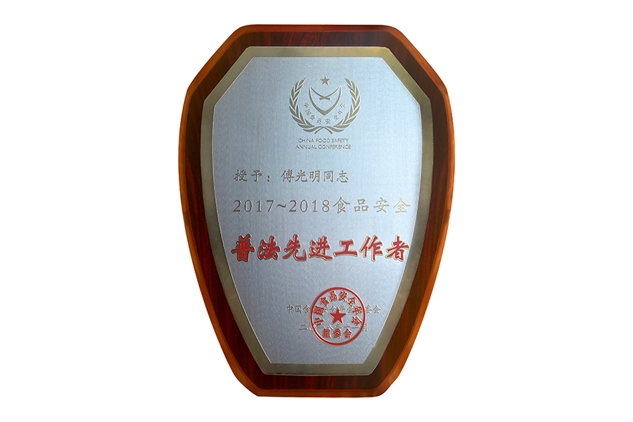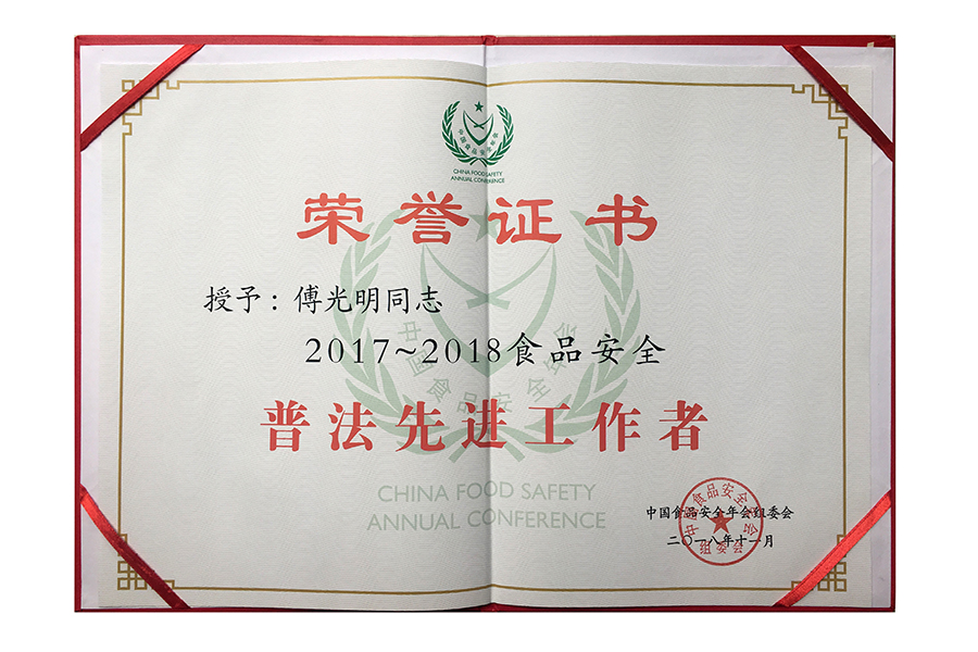 • 2018食安普法先进工作者证书