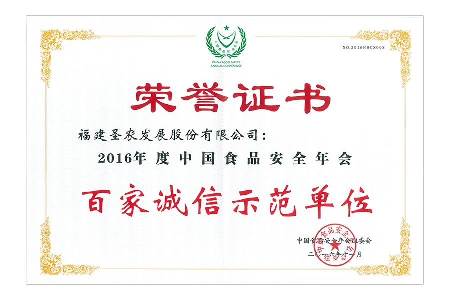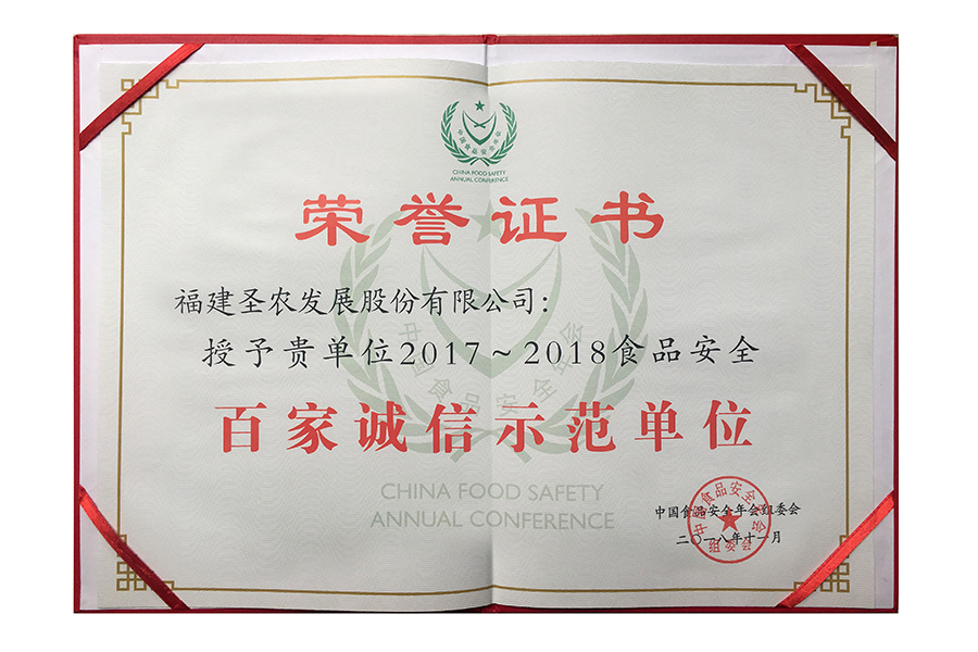 • 2017年中国食品安全年会 百家诚信示范单位.证书