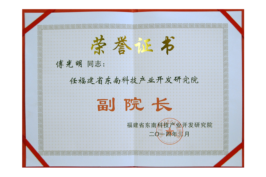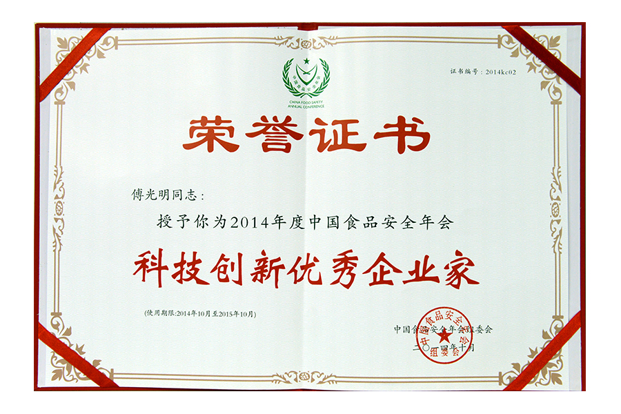 • 2014(傅光明)科技创新优秀企业家证书