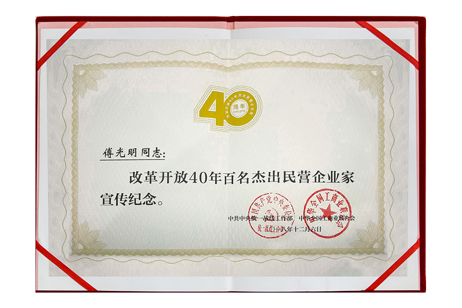 • 2018年傅光明改革开放40年百名杰出民营企业家宣传纪念
