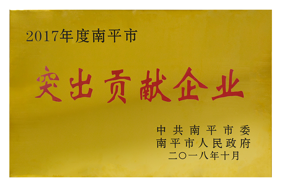 • 2018年10月-2017年度南平市突出贡献企业