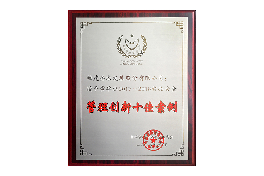 • 2017年中国食品安全年会.管理创新十佳案例.