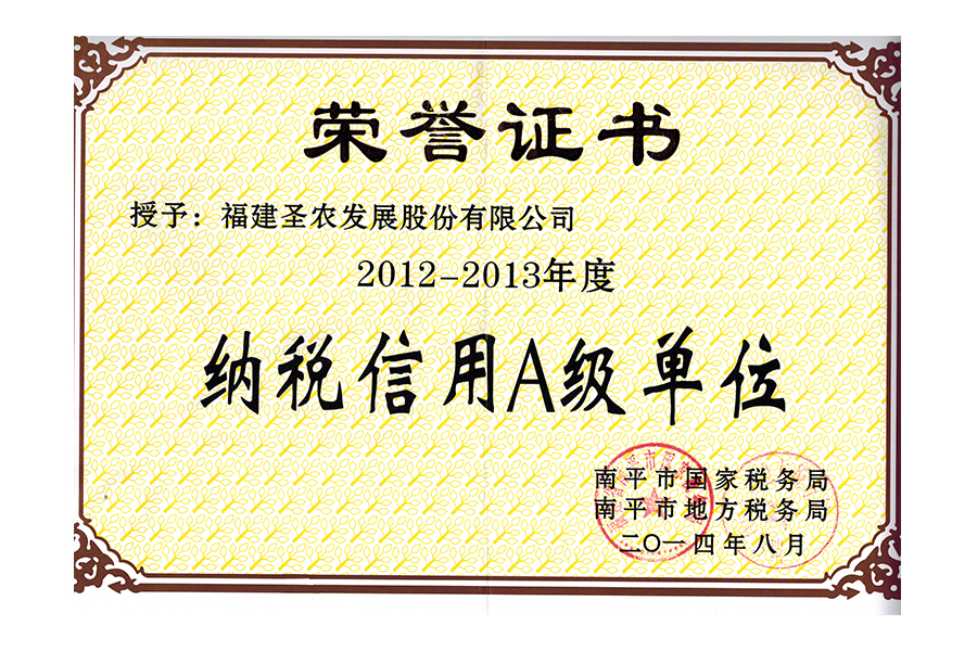 • 2012-2013年度南平市纳税信用A级单位