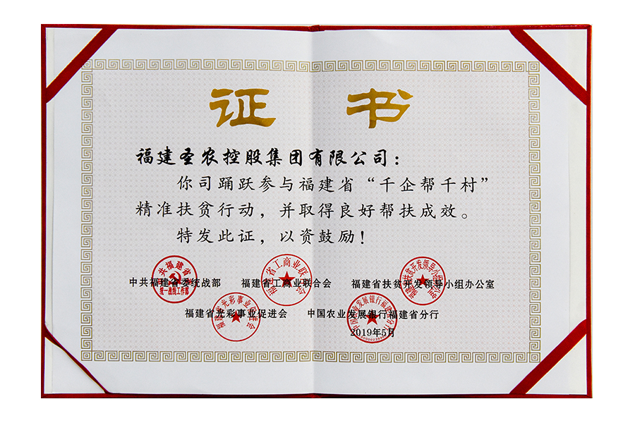 • 2019年福建js1996控股集团千企帮千村证书