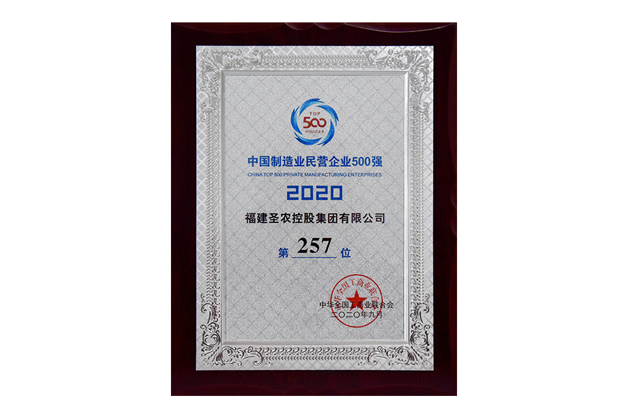 • 2020年中国制造业民营企业500强第257位